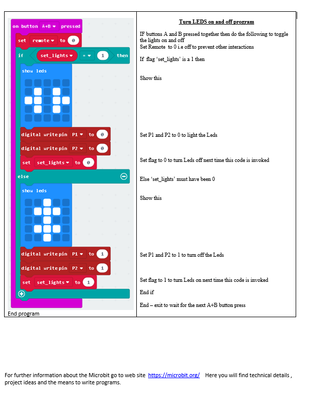 For further information about the Microbit go to web site https://microbit.org/ Here you will find technical details , project ideas and the means to write programs.